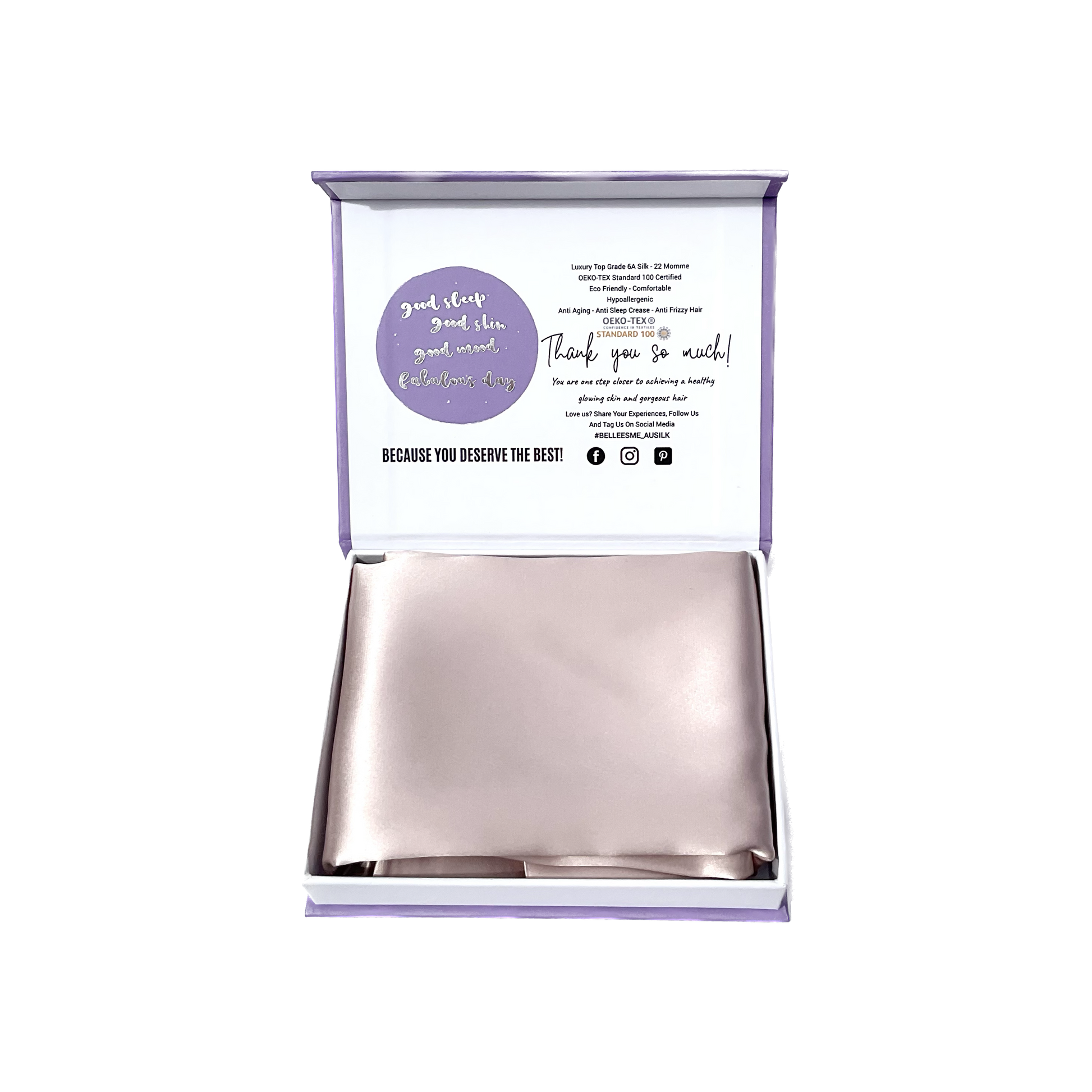 - 100 % Mulberry Silk – OEKO-TEX 100 certified Grade 6A – 22MM Silk Pillowcase